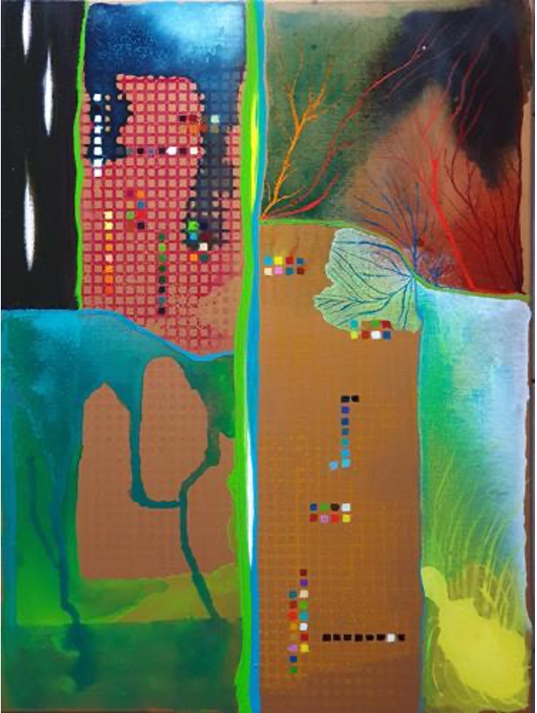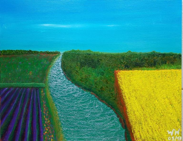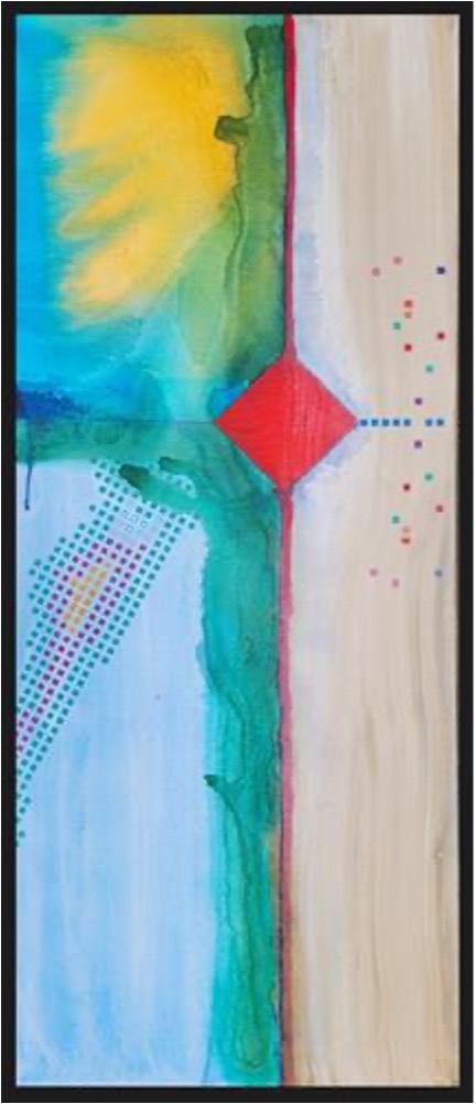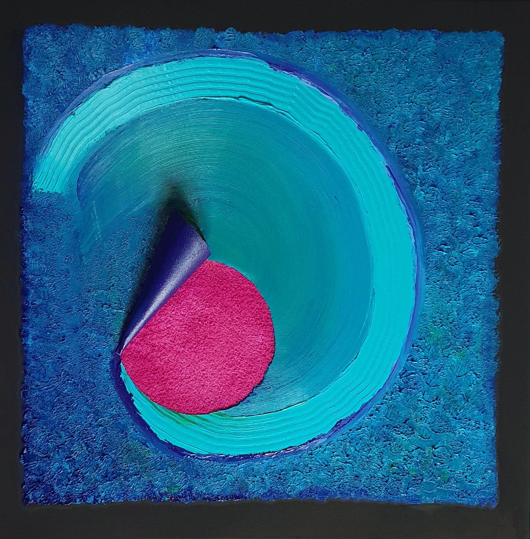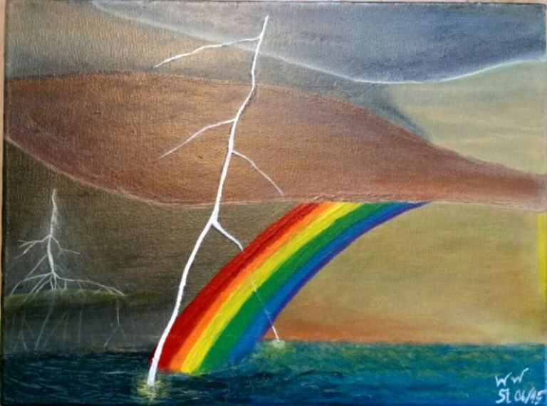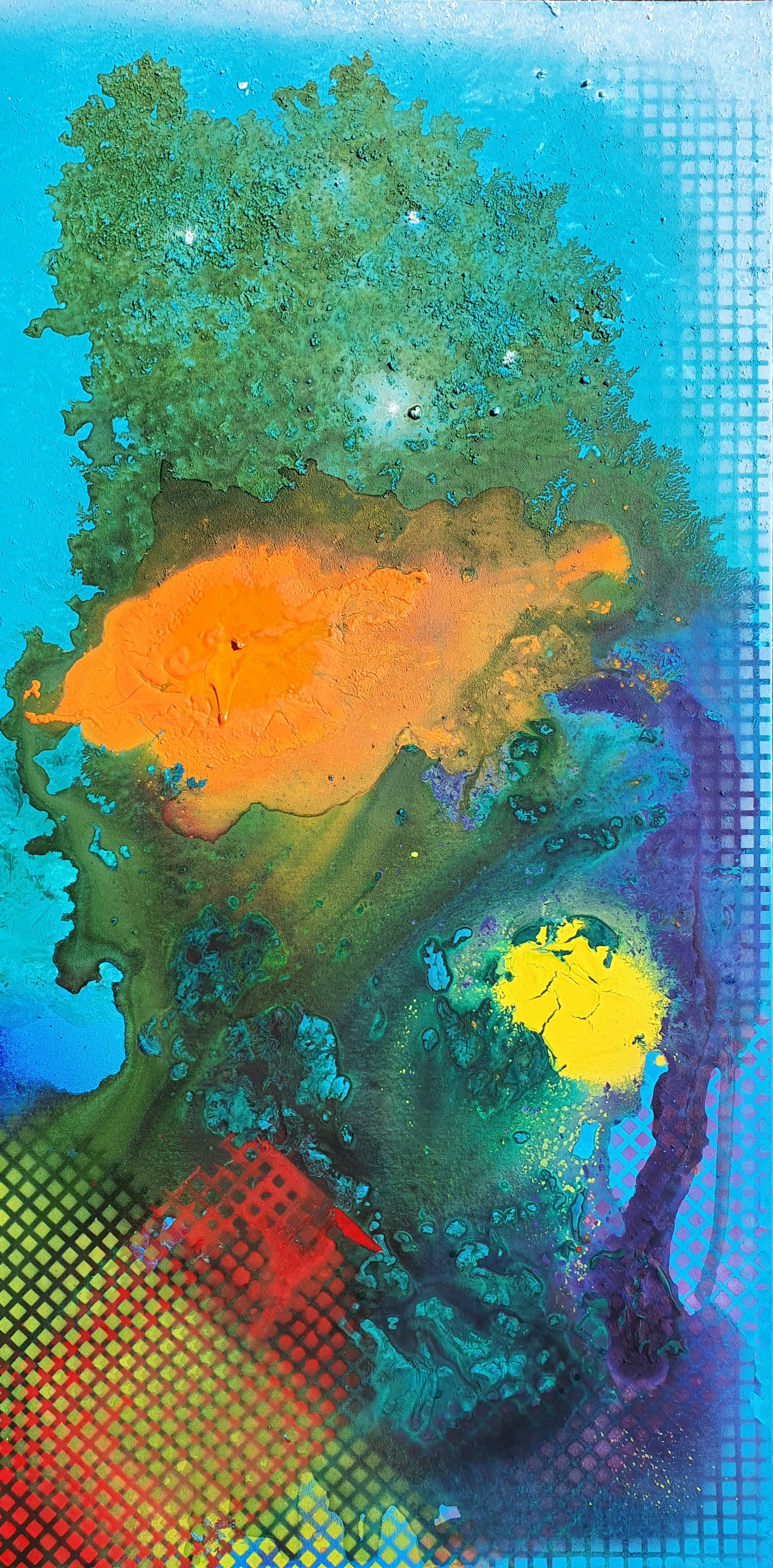 male ich nicht nur mit unterschiedlichen Malmitteln, sondern ich experimentiere auch mit Feuer, angebrannten/zerschnittenen Leinwänden und der Gießtechnik (Pouring) mit unterschiedlichen flüssigen Malmitteln (Gouache, Öl, Schellack, Acryl).